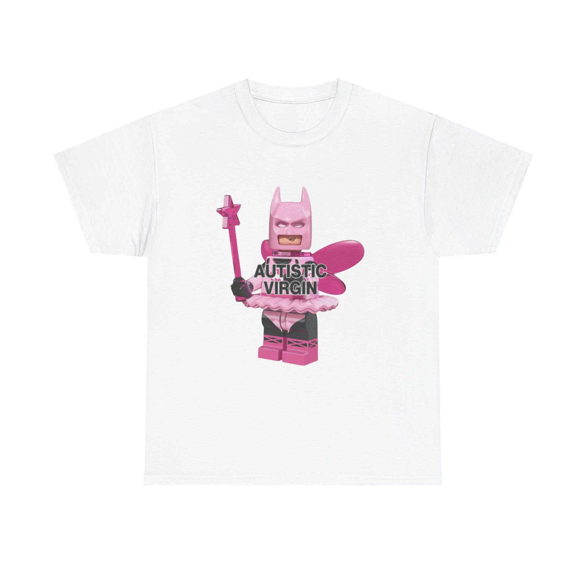 A soft, breathable cotton tee with a bold, playful graphic at the center chest. The artwork features a pink, toy-like superhero figure holding a wand, layered with strong, block lettering. The shirt sits relaxed across the shoulders with a crew neckline and a classic straight cut — easy to layer or wear solo. The print uses crisp DTF/DTG techniques for sharp detail and vibrant color that lasts wash after wash. Wear it when you want to add a cheeky, tongue-in-cheek statement to a casual outfit or when you’re building a quirky, expressive wardrobe.