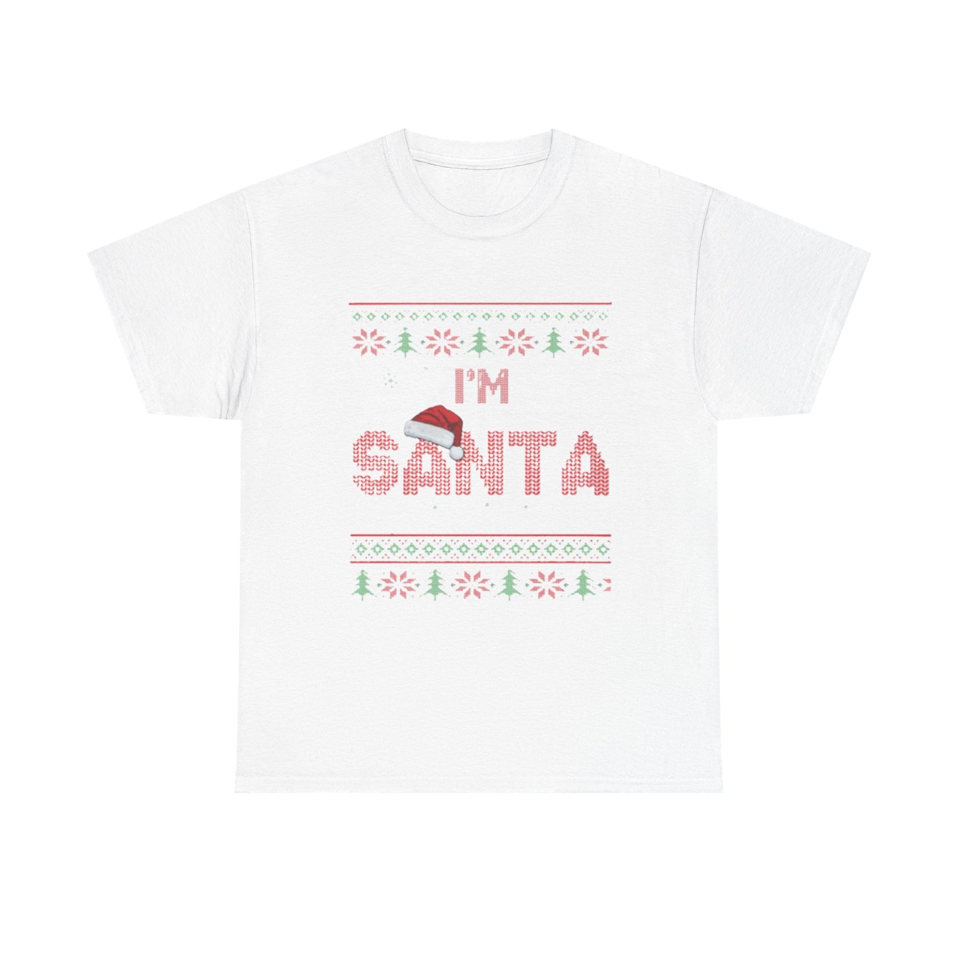 Soft, nostalgic, and a little cheeky — this classic crew tee wears the holiday spirit like a favorite sweater without the itch. The simple knitted-style graphic reads “I’M SANTA” with a tiny Santa hat and cross-stitched snowflakes and trees, giving a handmade, retro vibe that feels warm and familiar. It sits comfortably on the body with a relaxed, classic fit and a smooth surface that keeps the print crisp. Wear it to a low-key family gathering, a cozy cookie-baking night, or while handing out presents and winking at the kids. It’s the kind of shirt that sparks smiles, starts conversations, and becomes part of your seasonal traditions.